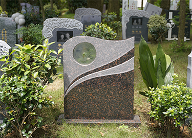 寓意:玉翠峰峦锦秀叠,玉之细腻温润,常伴亲人左右,玉之翠绿搭配英国红棕,让其墓碑彰显温馨之感。