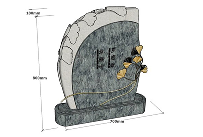 寓意:杏的谐音是“幸”,代表着幸运的含义,墓碑采用橄榄绿整体颜色素雅,杏叶采用铜雕和浮雕更具立体感,设计感,户型曲面设计让整个墓位充满温暖与希望。