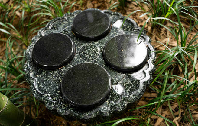 整座墓碑以并蒂花形巧琢而成,寄寓百年佳偶、永缔同心之愿。双花并绽于一枝,象征血脉相连、心意相通。并蒂花自古为爱情圣物,更寓家庭和睦、幸福绵长。